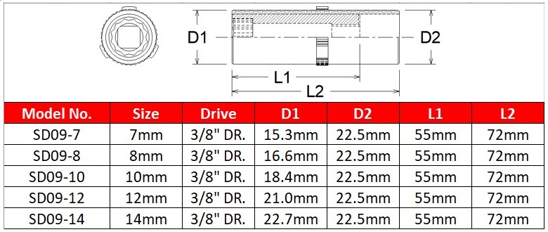 3/8" DR. Insulated Semi Deep Sockets